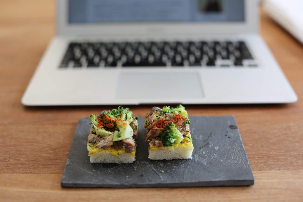 ファスト・フィンガーフード。アボカドマスタードディップ・オイルサーディン・オープンサンド